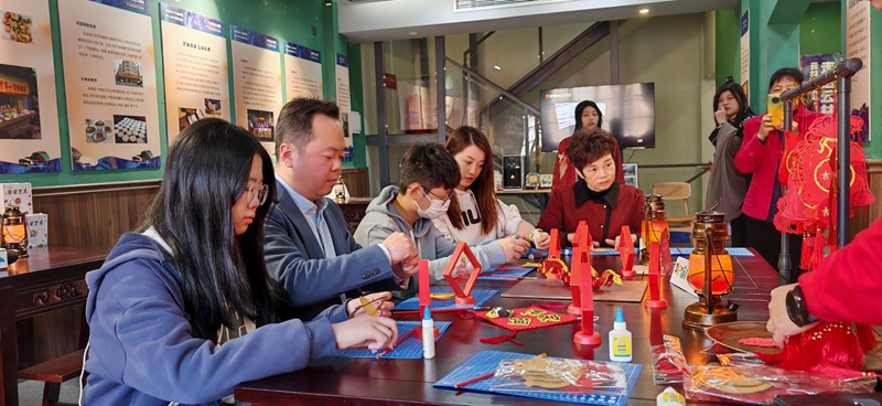 正月初三下午,汕頭市臺商投資企業(yè)協(xié)會會長謝志偉等臺商帶著家人一起來到展館參觀,與汕頭市民、外地游客一同互動體驗汕頭剪紙、嵌瓷等非遺文化技藝。“這個嵌瓷和臺灣的傳統(tǒng)工藝很相似,帶小朋友來體驗很有意義”。帶著6歲兒子小維親手制作嵌瓷工藝品的臺商戴歆璇女士告訴記者,今年春節(jié)她和家人在汕頭過了一個傳統(tǒng)佳節(jié),幸福感滿滿。除夕當(dāng)天晚上和數(shù)名臺胞一起圍爐過大年,品嘗牛肉丸、鹵鵝等潮汕美食,大年初二在電視屏幕前欣賞了精彩的迎新春焰火晚會,奪人眼球、規(guī)模宏大的焰火秀視覺盛宴讓她們歡呼聲聲,難以忘懷,初三下午逛小公園游展館,領(lǐng)略了汕臺兩地文創(chuàng)亮點和美學(xué)風(fēng)格。她表示“汕臺一家親”,新的一年將帶動更多的年輕臺胞來汕頭參觀、交流。
