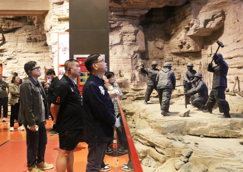 離開(kāi)展廳,參訪團(tuán)向著青年洞進(jìn)發(fā)。仰望峭壁,只見(jiàn)洞口鐫刻的“青年洞”三字,蒼勁有力!斑@是一個(gè)奇跡。”來(lái)自臺(tái)灣的河先生扶著護(hù)欄,望著遠(yuǎn)處奔涌的渠水說(shuō),“站在這里,我可以想象當(dāng)年的艱險(xiǎn)。在那個(gè)年代,人們吃苦耐勞的精神讓我觸動(dòng),他們靠的不是工具,而是信念。這種精神跨越時(shí)空,值得今天的我們用心學(xué)習(xí)。”