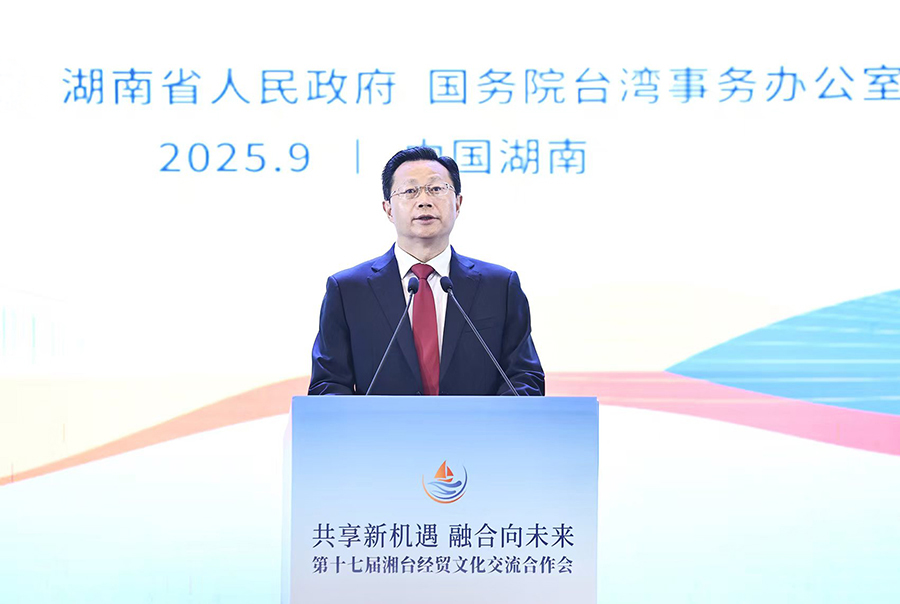 9 月16日,中共中央臺辦、國務(wù)院臺辦副主任潘賢掌在湖南省長沙市出席第十七屆湘臺經(jīng)貿(mào)文化交流合作會開幕式并致辭。