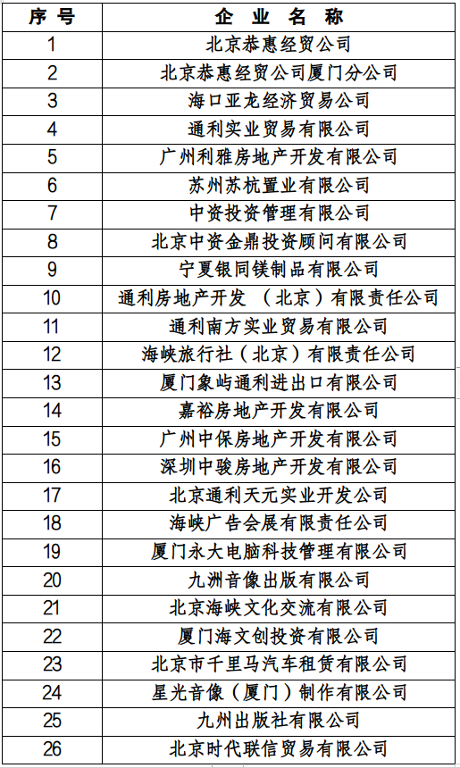 中央臺(tái)辦(國務(wù)院臺(tái)辦)全級(jí)次企業(yè)名單