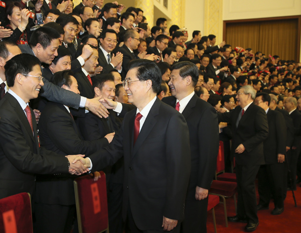 在熱烈的掌聲中,胡錦濤、習(xí)近平發(fā)表了重要講話。