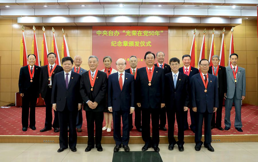 6月23日上午,中央臺(tái)辦舉行“光榮在黨50年”紀(jì)念章頒發(fā)儀式,向老黨員傳遞黨的關(guān)心關(guān)愛,重溫黨的百年光輝歷程和偉大成就,激勵(lì)廣大黨員干部以更加昂揚(yáng)姿態(tài)奮力開啟全面建設(shè)社會(huì)主義現(xiàn)代化國(guó)家新征程。中央臺(tái)辦主任劉結(jié)一和辦領(lǐng)導(dǎo)班子成員、12名獲得紀(jì)念章的老黨員、機(jī)關(guān)和直屬事業(yè)單位黨員代表共100余人參加儀式。