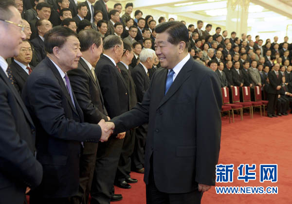 大會開始前,賈慶林和國務(wù)委員戴秉國等中央領(lǐng)導(dǎo)同志親切會見了全體代表并合影留念。
